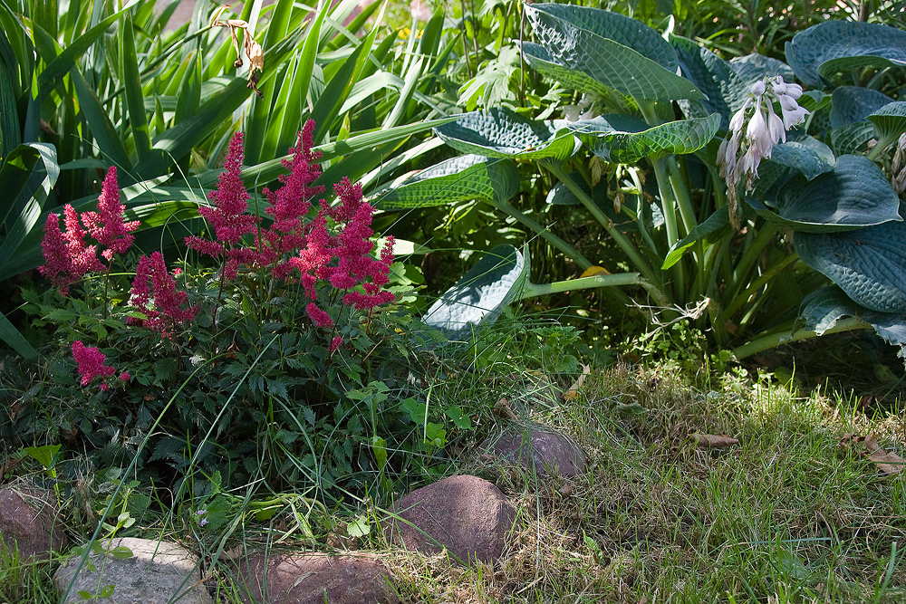 Хоста Зибольда -Pсорт Big Daddy (Биг Дадди) и астильба - сорт не знаю, потому как куплена у бабульки в Малаховке на рынке. )))))))